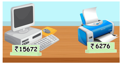 ஒரு மென்பொருள் கடையில் உள்ள கணினியின் விலை ₹15672 அச்சு இயந்த்திரத்தின் விலை ₹6276 . இதில் எந்த பொருளின் விலை அதிகம்.