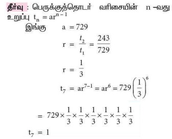 3. 729, 243, 81,... என்ற பெருக்குத் தொடர்வரிசையின் 7-வது உறுப்பைக் காண்க.