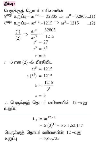 6. ஒரு பெருக்குத் தொடர்வரிசையின் 9-வது உறுப்பு 32805 மற்றும் 6-வது உறுப்பு 1215 எனில், 12-வது உறுப்பைக் காண்க.