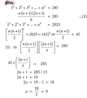 3. 13 + 23 + 33 + ... + k3 = 44100 எனில், 1 + 2 + 3 + ... + k யின் மதிப்பு காண்க.