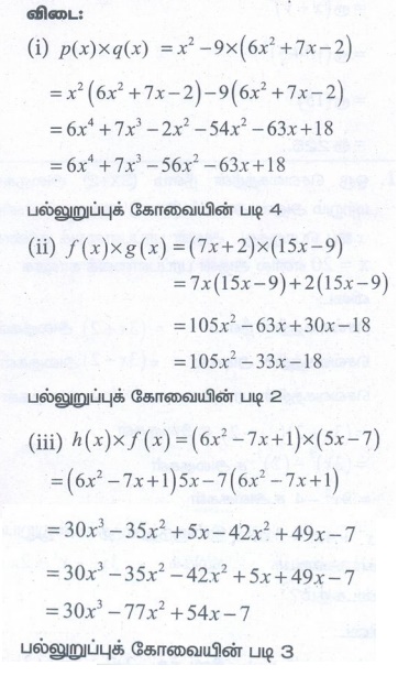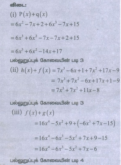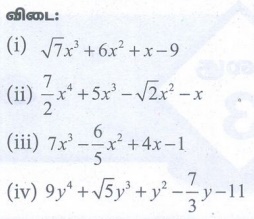 எண்ணியல் கணக்குகள் பதில்கள் மற்றும் தீர்வுகள் | இயற்கணிதம் | கணக்கு - பயிற்சி 3.1: பல்லுறுப்புக் கோவைகள் (Polynomials) | 9th Maths : UNIT 3 : Algebra