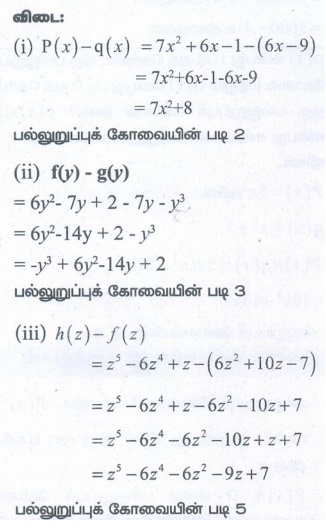 6. பின்வரும் பல்லுறுப்புக் கோவைகளைக் கழிக்க. மேலும் கழித்து வரும் பல்லுறுப்புக் கோவையின் படியைக் காண்க.