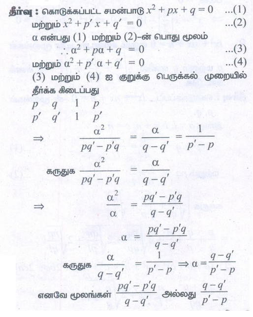 10. x2 + px + q = 0 மற்றும் x2 + p'x + q' = 0 ஆகிய இரு சமன்பாடுகளுக்கும் ஒரு பொதுவான மூலம் இருப்பின், அம் மூலம்