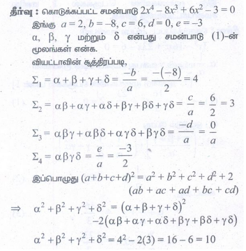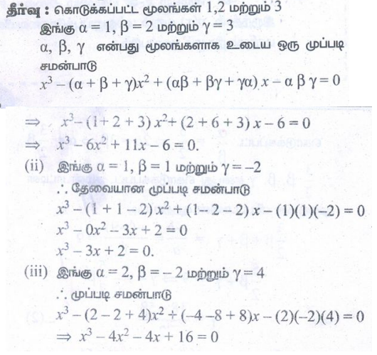 கேள்விகளுக்கான பதில்கள், தீர்வுகள் - பயிற்சி 3.1: வியட்டாவின் சூத்திரங்கள் மற்றும் பல்லுறுப்புக் கோவைச் சமன்பாடுகளை உருவாக்குதல் (Vieta's Formulae and Formation of Polynomial Equations) | 12th Maths : UNIT 3 : Theory of Equations