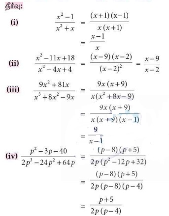 10th Mathematics : UNIT 3 : Algebra : Exercise 3.4: Rational Expressions Problem Questions with Answer, Solution | Mathematics in Tamil : 10th Standard