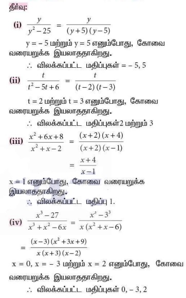 2. கீழ்க்கண்ட கோவைகளுக்கு விலக்கப்பட்ட மதிப்புகள் இருப்பின் அவற்றைக் காண்க.
