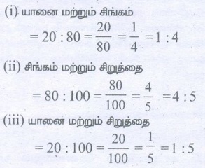 யானை மற்றும் சிறுத்தையின் விகிதம் மிகச் சிறியது.