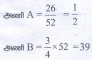 8. அணி A ஆனது 52 போட்டிகளில் 26 போட்டிகளை வெல்கிறது. அணி B ஆனது 52 போட்டிகளில் 4 இல் 3 போட்டிகளை வெல்கிறது எனில், எந்த அணியின் வெற்றிப் பதிவு சிறப்பானது?