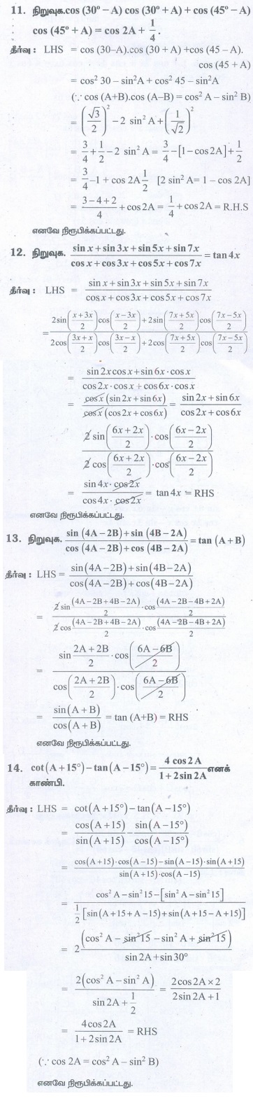 கணக்கு கேள்வி பதில்கள், தீர்வு | கணிதம் - பயிற்சி 3.6 : முக்கோணங்களின் முற்றொருமைகள் : பெருக்கலிலிருந்து கூட்டல் மற்றும் கூட்டலிலிருந்து பெருக்கல் முற்றொருமைகள் | 11th Mathematics : UNIT 3 : Trigonometry