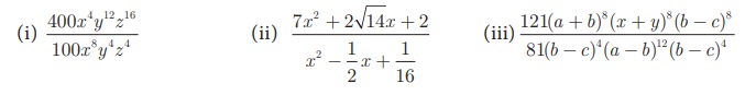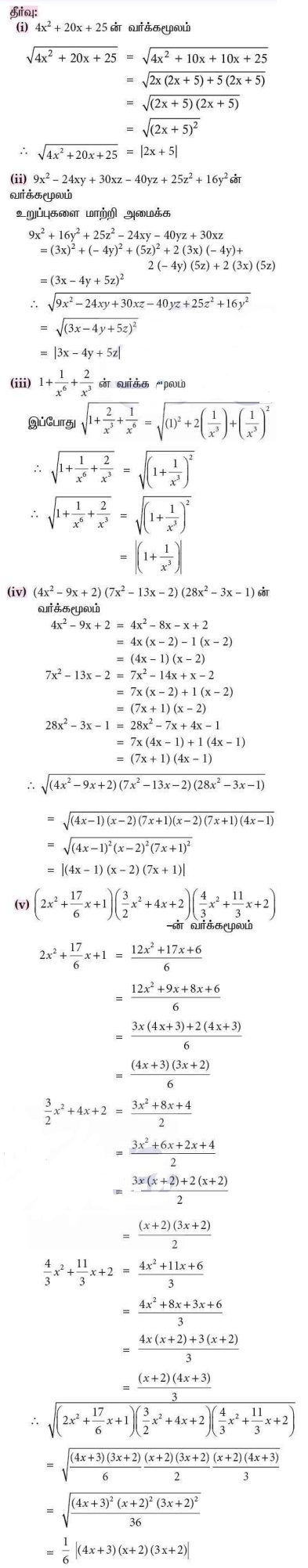கணக்கு புத்தக பயிற்சி கேள்விகளுக்கான பதில்கள் மற்றும் தீர்வு - கணிதம்: இயற்கணிதம் : காரணிப்படுத்துதல் முறையில் வர்க்கமூலம் காணுதல் : பதில், தீர்வுடன் பயிற்சி வினாக்கள்