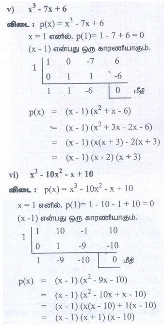 9th Maths : UNIT 3 : Algebra : Exercise 3.8: Factorisation using Synthetic Division Numerical Problems with Answers, Solution | Algebra | Maths in Tamil : 9th Standard