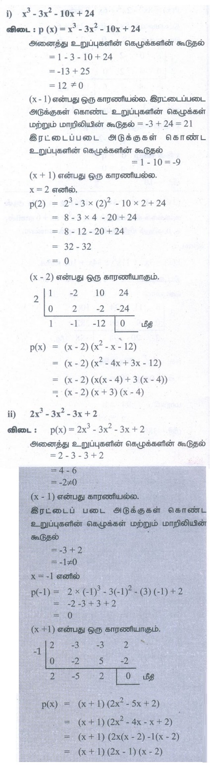 9 ஆம் வகுப்பு கணக்கு : அலகு 3 : இயற்கணிதம் : பயிற்சி 3.8: தொகுமுறை வகுத்தலைப் பயன்படுத்திக் காரணிப்படுத்துதல் (Factorisation using Synthetic Division) - எண்ணியல் கணக்குகள் பதில்கள் மற்றும் தீர்வுகள் | இயற்கணிதம் | கணக்கு : 9 ஆம் வகுப்பு