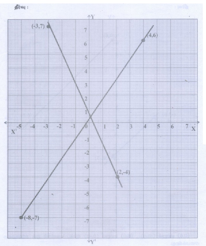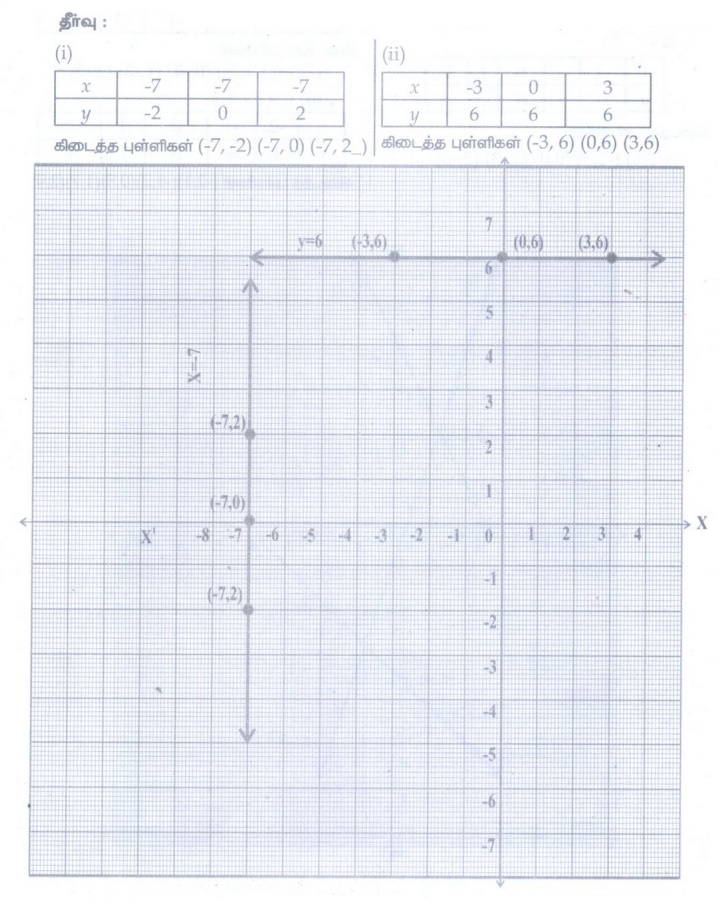 (ii) X = 4 மற்றும் Y = – 4 என்ற கோடுகள் சந்திக்கும் புள்ளி __(4, −4)__