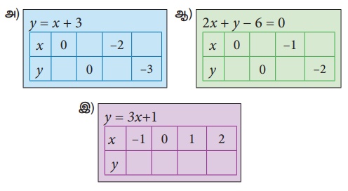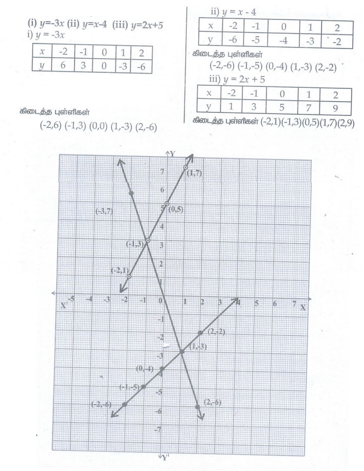 8. கீழ்க்காணும் சமன்பாடுகளுக்கு வரைபடம் வரைக.