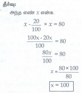 8. ஓர் எண்ணை 20% குறைத்தால் 80 கிடைக்கிறது எனில், அந்த எண்ணைக் காண்க