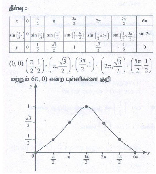 3. 0 ≤ x < 6π எனும்போது y = sin(1/3 x) − ன் வரைபடம் வரைக.