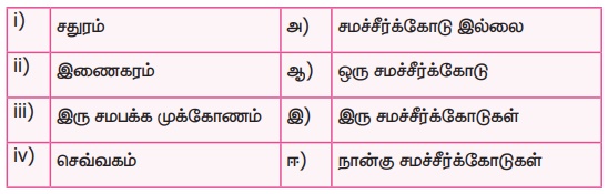 iv) செவ்வகம் – ஈ) நான்கு சமச்சீர்க்கோடுகள்