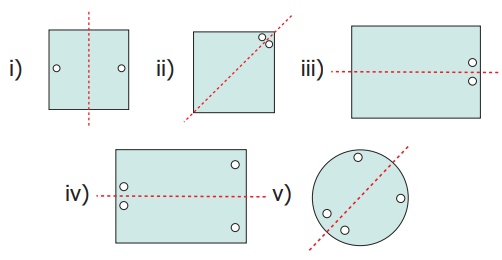 6. ஒரு பகுதியில் உள்ள துளைகள் மற்றொரு பகுதியில் உள்ள துளைகளுடன் சரியாகப் பொருந்துமாறு கொடுக்கப்பட்ட வடிவங்களுக்குச் சமச்சீர்க்கோடு வரைக.