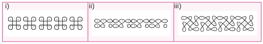 10. கொடுக்கப்பட்ட எல்லைக் கோலங்களில் (border kolams) இடப்பெயர்வு பெற்ற அமைப்பைக் காண்க.