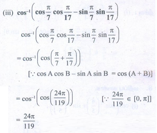 (iii) cos–l [cos π/7 cos π/7 − sin π/7 sin π/7] .