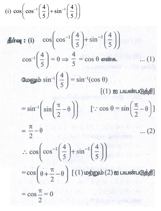 12 ஆம் வகுப்பு கணிதம் : அத்தியாயம் 4 : நேர்மாறு முக்கோணவியல் சார்புகள் : பயிற்சி 4.2: கொசைன் சார்பு மற்றும் நேர்மாறு கொசைன் சார்பு (The Cosine Function and Inverse Cosine Function) - கேள்விகளுக்கான பதில்கள், தீர்வுகள் : 12 ஆம் வகுப்பு