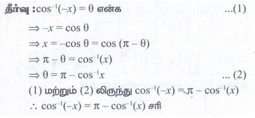 3. cos–l(−x) = π − cos–l(x) என்பது மெய்யாகுமா? விடைக்கு தக்க காரணம் கூறுக.