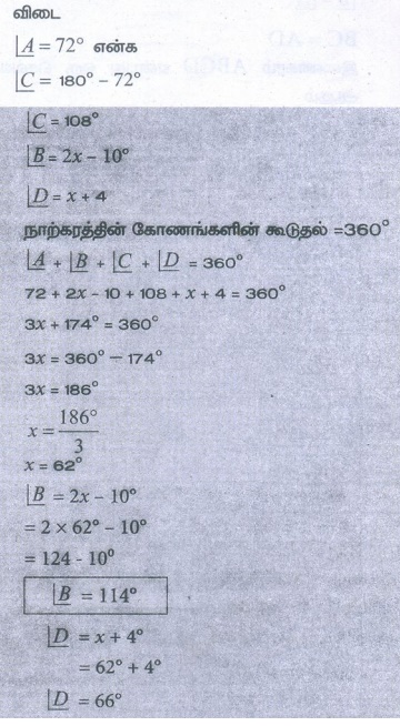 எண்ணியல் கணக்குகள் பதில்கள் மற்றும் தீர்வுகள் | வடிவியல் | கணக்கு - பயிற்சி 4.2: நாற்கரங்கள் | 9th Maths : UNIT 4 : Geometry