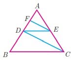 3. ΔABC-யில் D மற்றும் E என்ற புள்ளிகள் முறையே பக்கங்கள் AB மற்றும் AC ஆகியவற்றின் மீது அமைந்துள்ளன. AB = 12 செ.மீ, AD = 8 செ.மீ, AE = 12 செ.மீ மற்றும் AC = 18 செ.மீ. எனில் DE || BC என நிறுவுக.