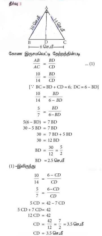 (i) AB = 5 செ.மீ, AC = 10 செ.மீ, BD = 1.5 செ.மீ மற்றும் CD = 3.5 செ.மீ.