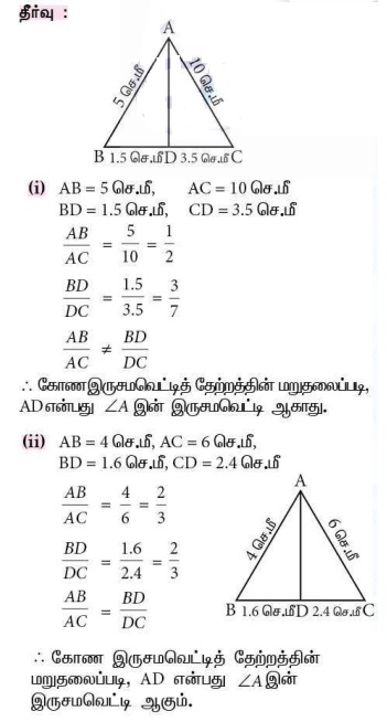 8. பின்வருவனவற்றுள் ΔABC-யில் AD ஆனது ∠A -யின் இருசமவெட்டி ஆகுமா எனச் சோதிக்கவும்.