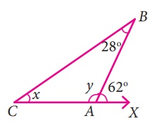 i) முக்கோணத்தின் உள் இரு கோணத்தின் கூடுதல் அவற்றின் வெளிக்கோணத்திற்கு சமம்.