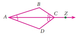 8. கொடுக்கப்பட்ட படத்தில் கதிர் AZ ஆனது ∠BAD மற்றும் ∠DCB இன் இருசமவெட்டி எனில், i) ΔBAC ≅ ΔDAC ii) AB = AD.