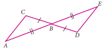 10. ப-ப-ப விதிப்படி, முக்கோணங்கள் சர்வசமம் ஆகும் மற்றும் AC ஆனது DE க்கு இணையாகும்.