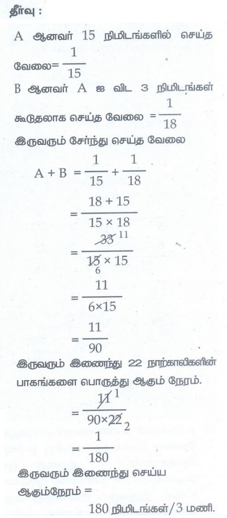 (i) A என்பவர் ஒரு வேலையை 3 நாள்களிலும் B என்பவர் 6 நாள்களிலும் முடிப்பர் எனில், இருவரும் ஒன்றாகச் சேர்ந்து அந்த வேலையை 25 நாள்களில் முடிப்பர்.