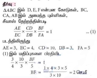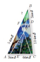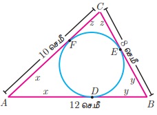 3. படத்தில் காட்டியுள்ளபடி, 8 செ.மீ, 10 செ.மீ மற்றும் 12 செ.மீ பக்கங்கள் உடைய முக்கோணத்தினுள் ஒரு வட்டம் அமைந்துள்ளது எனில், AD, BE மற்றும் CF ஐக் காண்க.
