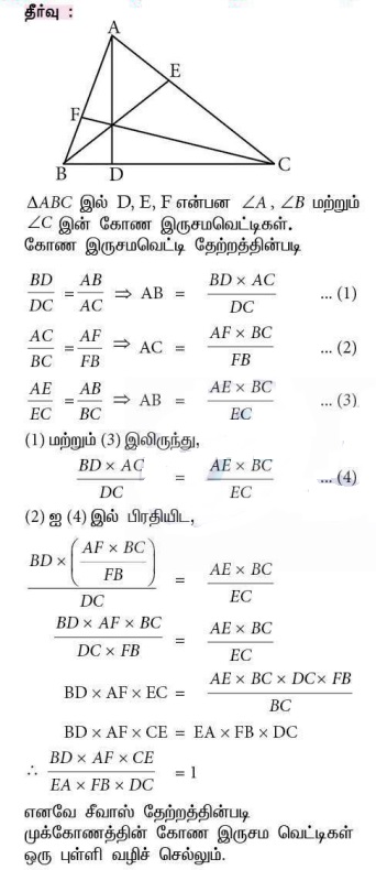 9. ஒரு முக்கோணத்தின் கோண இருசம வெட்டிகள் ஒரு புள்ளியின் வழியாகச் செல்லும் எனக் காட்டுக.