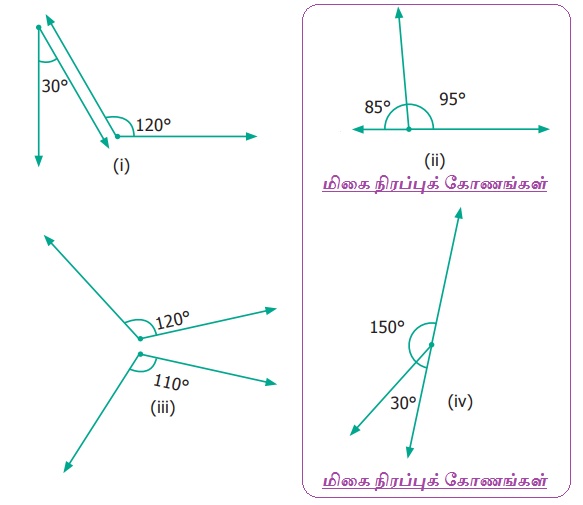 (i) மற்றும் (iii) மிகை நிரப்புக் கோணங்கள் அல்லாத கோணங்கள்