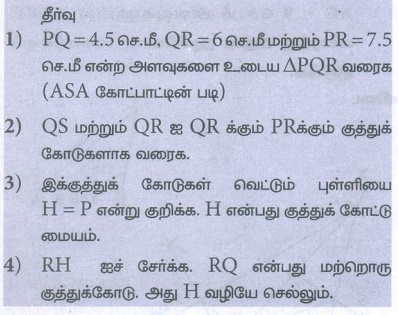 எண்ணியல் கணக்குகள் பதில்கள் மற்றும் தீர்வுகள் | வடிவியல் | கணக்கு - பயிற்சி 4.5: செய்முறை வடிவியல் (Practical Geometry) | 9th Maths : UNIT 4 : Geometry