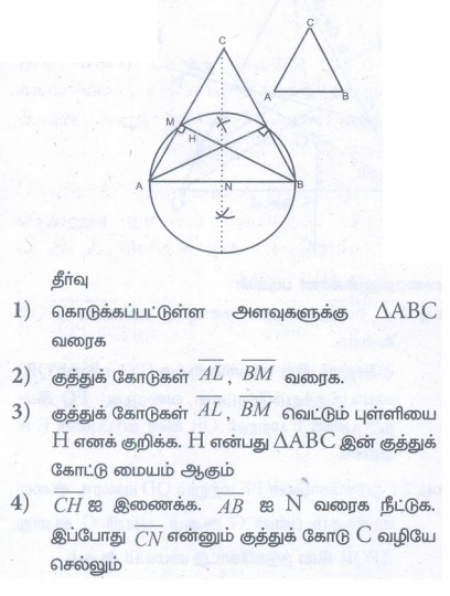 பக்க அளவுகளைக் கொண்ட சமபக்க முக்கோணம் வரைக. அம்முக்கோணத்திற்குக்