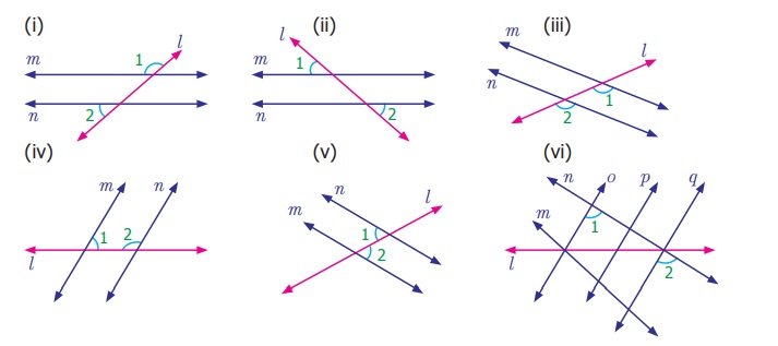 1. i) குறுக்கு வெட்டியில் ஒரே பக்கம் அமைந்த வெளி கோணங்கள்.