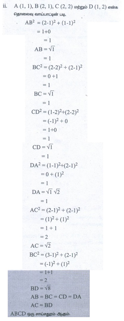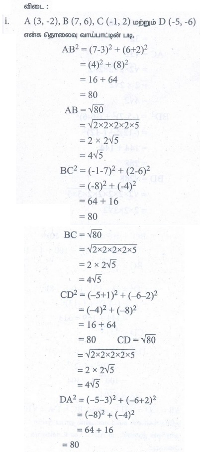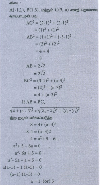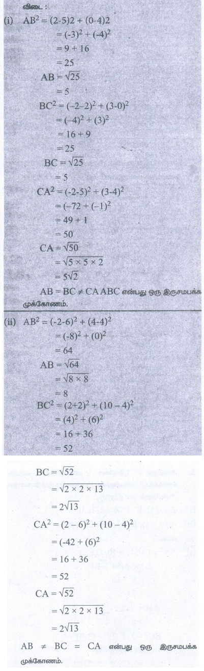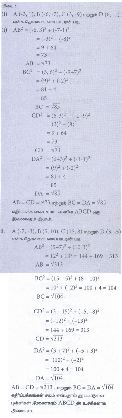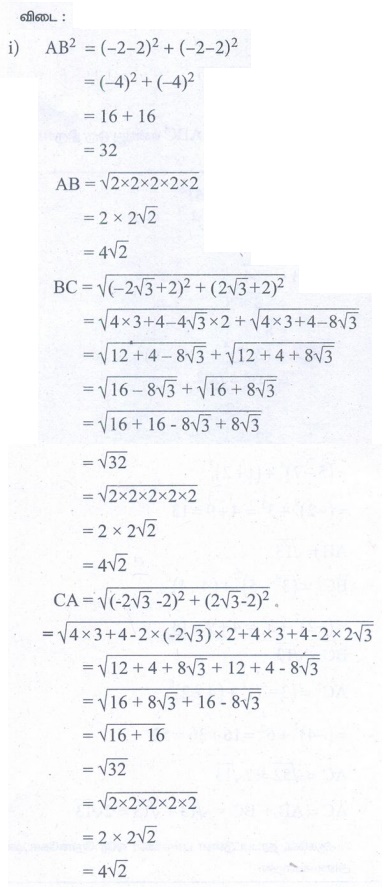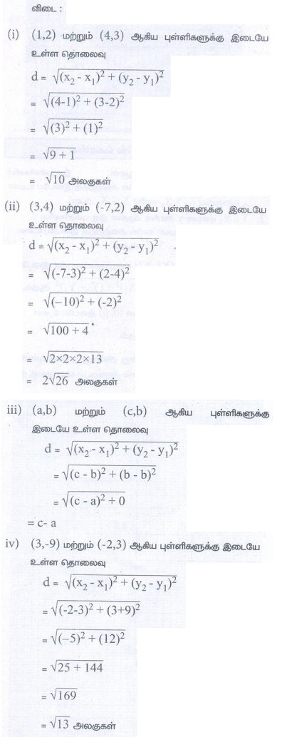 எண்ணியல் கணக்குகள் பதில்கள் மற்றும் தீர்வுகள் | ஆயத்தொலை வடிவியல் | கணக்கு - பயிற்சி 5.2: இரு புள்ளிகளுக்கு இடைப்பட்ட தொலைவு (Distance between any Two Points) | 9th Maths : UNIT 5 : Coordinate Geometry