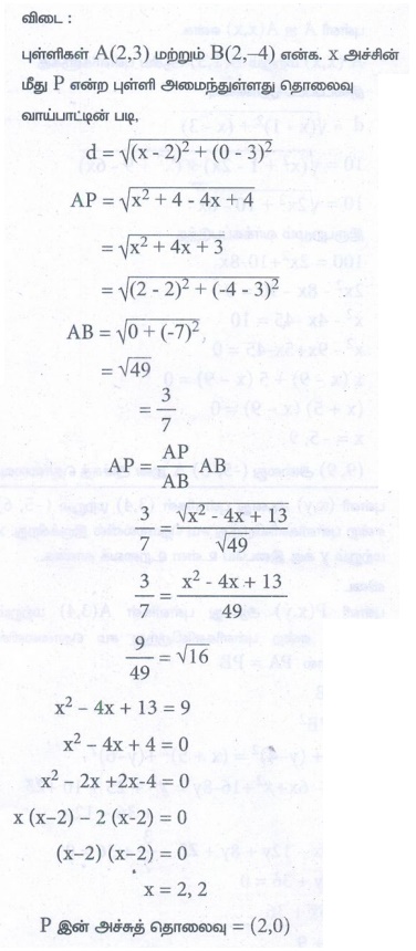 மீது அமைந்துள்ள புள்ளி P ஆனது AP = 3/7 AB என்ற வகையில் அமைந்துள்ளது எனில், புள்ளி P இன் அச்சுத் தொலைவைக் காண்க.