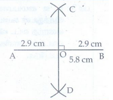 v) 5.8 செ.மீ நீளமுள்ள AB என்ற கோட்டுத் துண்டிக்கு செங்குத்து இரு சமவெட்டியை வரைக.