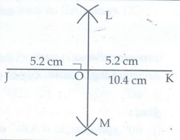 iv) 10.4 செ.மீ நீளமுள்ள JK என்ற கோட்டுத் துண்டிக்கு செங்குத்து இரு சமவெட்டியை வரைக.