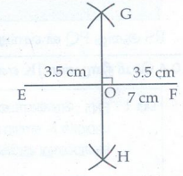 ii) 7 செ.மீ நீளமுள்ள EF என்ற கோட்டுத் துண்டிக்கு செங்குத்து இரு சமவெட்டியை வரைக.