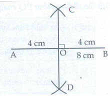 படி 4 : C மற்றும் D ஆகியவற்றை இணைக்கவும். CD ஆனது AB ஐ வெட்டும் புள்ளியை O எனக் குறிக்க.