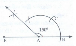 vi) 150° அளவுடைய கோணத்தை வரைதல் : (120° அளவுடைய கோணத்தை வரைதலில் உள்ள படி 1,2,3,4 ஐ பயன்படுத்தவும்)