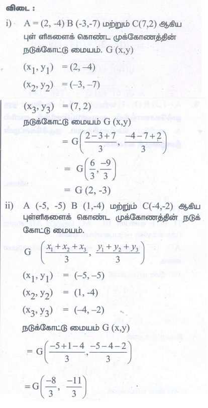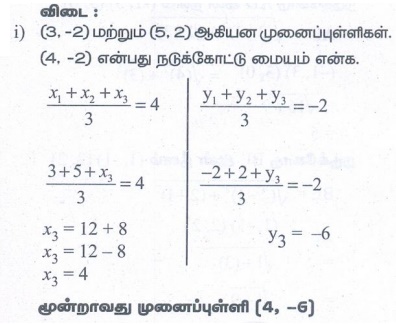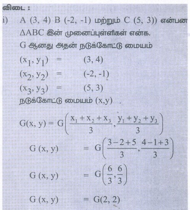 எண்ணியல் கணக்குகள் பதில்கள் மற்றும் தீர்வுகள் | ஆயத்தொலை வடிவியல் | கணக்கு | ஆயத்தொலை வடிவியல் | கணக்கு - பயிற்சி 5.5: நடுக்கோட்டு மையத்தின் ஆயத்தொலைவுகள் (The Coordinates of the Centroid) | 9th Maths : UNIT 5 : Coordinate Geometry
