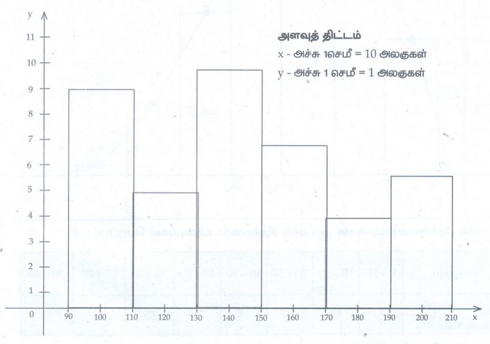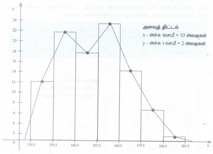 (i) நிகழ்வுச் செவ்வகத்தின் மொத்தப் பரப்பளவானது கொடுக்கப்பட்ட மொத்த நிகழ்வெண்களின் கூடுதலுக்கு …………… இருக்கும். விடை : விகிதச் சமத்தில்