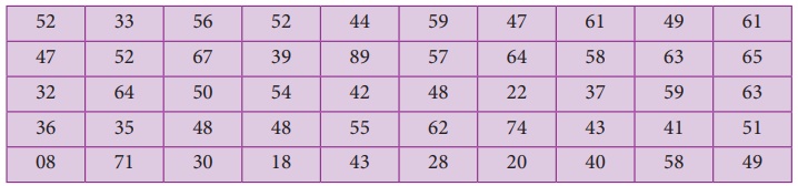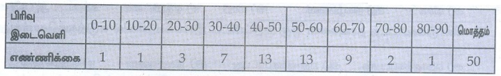 8. 50 மாணவர்களின் கணித மதிப்பெண்கள் கீழேக் கொடுக்கப்பட்டுள்ளது.